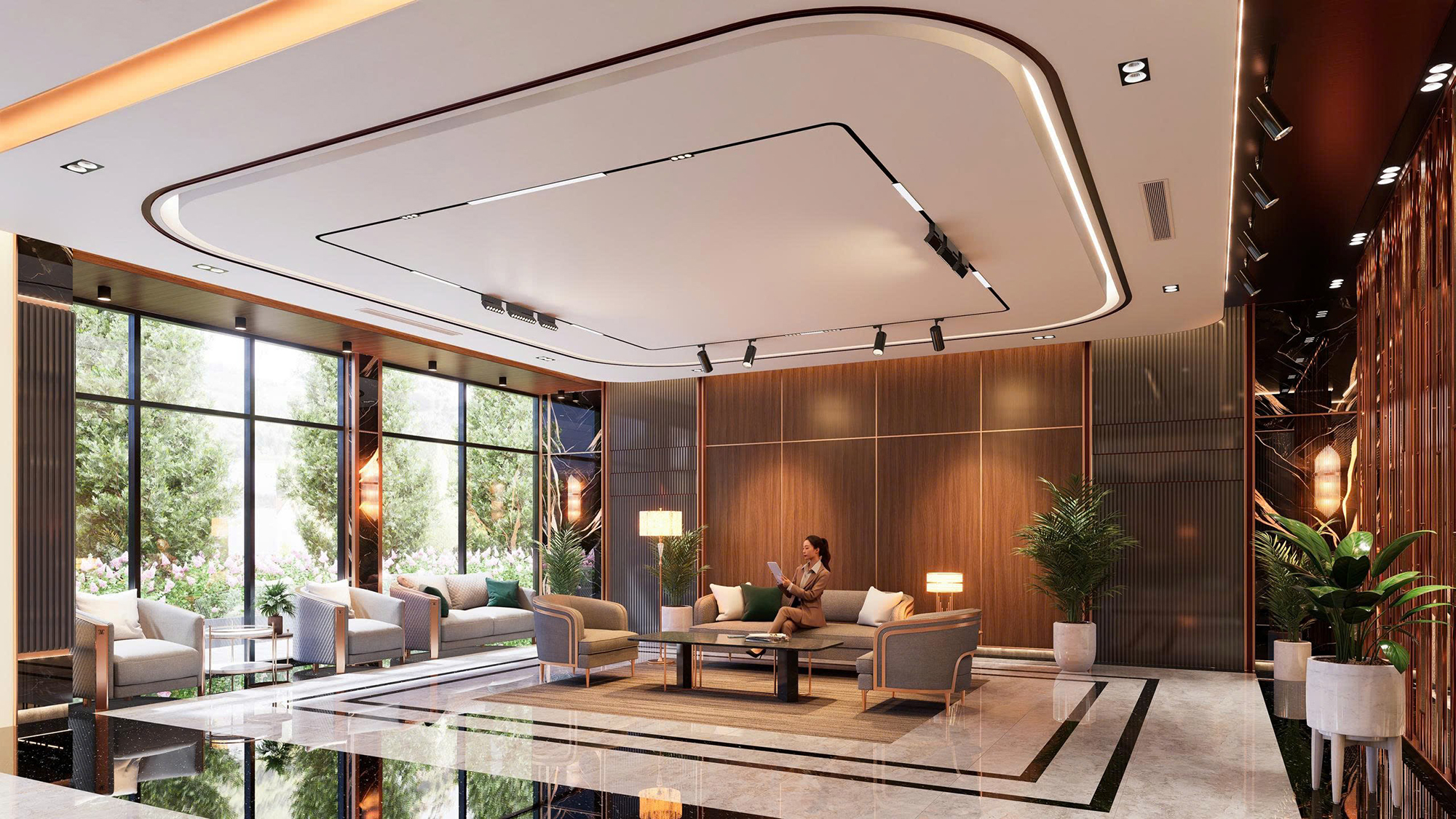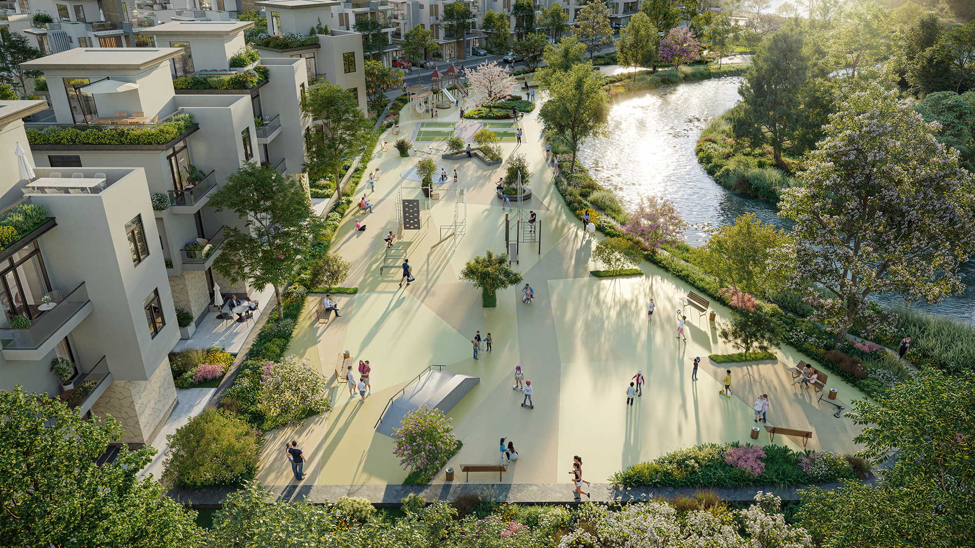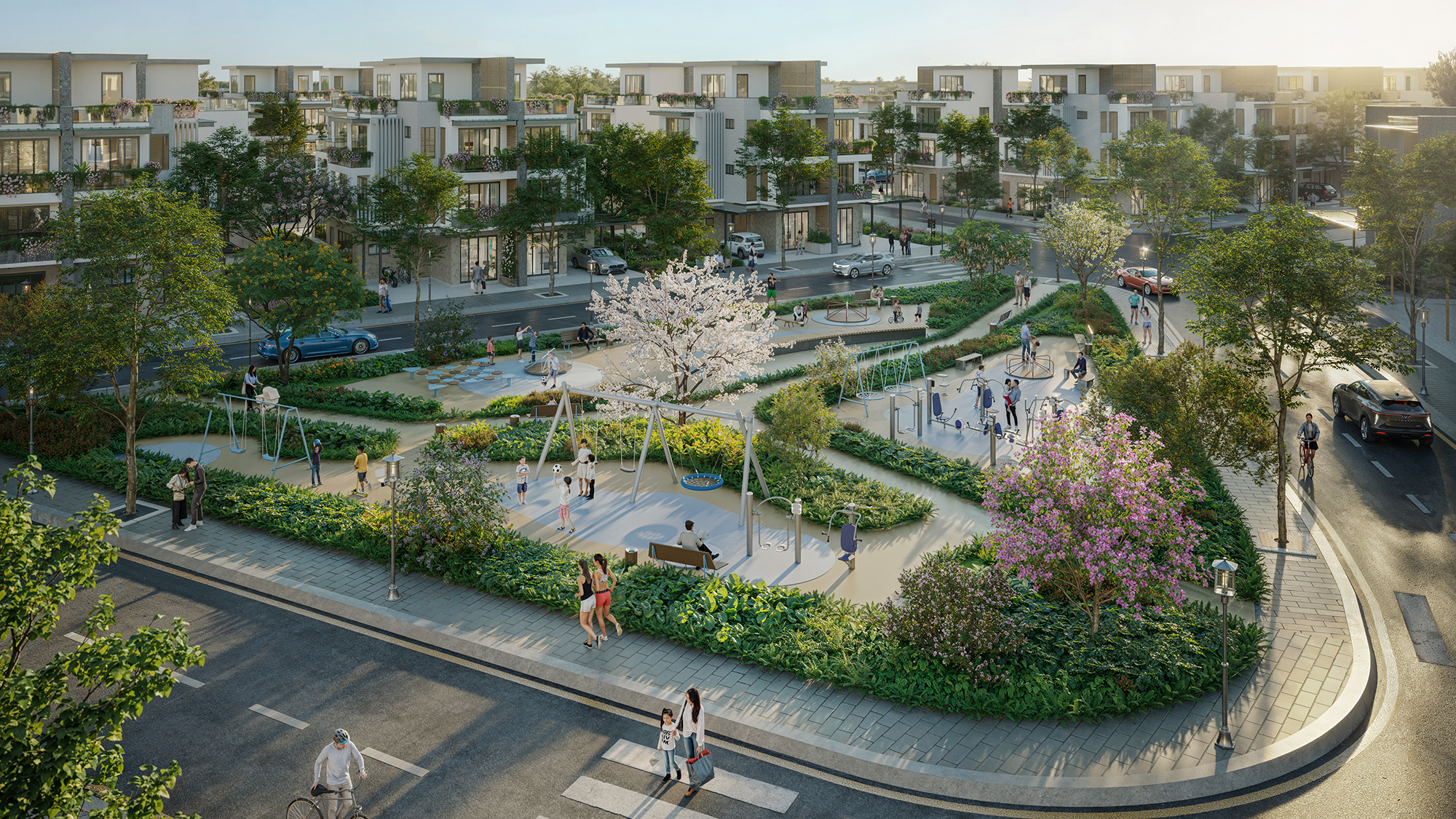 Vườn dạo bộ & công viên xanh: không gian thư thái, kết nối thiên nhiên ngay trong nội khu.